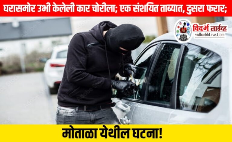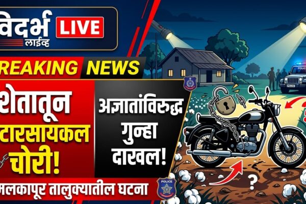 बुलढाणा : शहरातील विदर्भ हाउसींग सोसायटी परिसरात घरासमोर उभी केलेली मोटारसायकल अज्ञात चोरट्यांनी लंपास केल्याची घटना उघडकीस आली आहे. विशेष म्हणजे ही संपूर्ण चोरीची घटना सीसीटीव्ही कॅमेऱ्यात कैद झाली असून पोलिसांनी तपासाची चक्रे वेगाने फिरवली आहेत. फिर्यादी आसीफ खान अयुब खान पठाण (वय ३६, रा. विदर्भ हाउसींग सोसायटी, बुलढाणा) यांनी दिलेल्या तक्रारीनुसार, त्यांनी २१ एप्रिल…