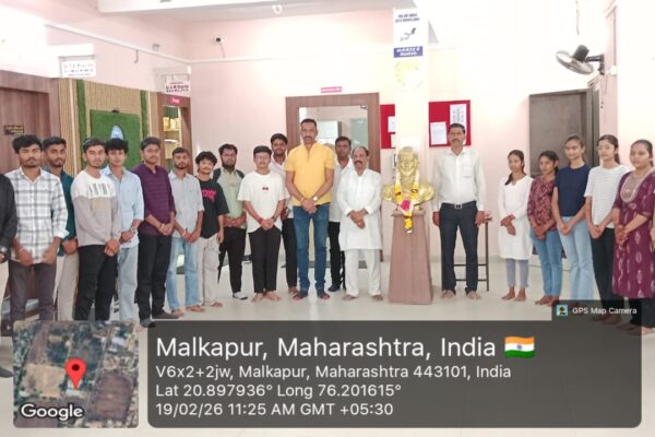 मलकापूर : छत्रपती शिवाजी महाराज यांच्या जयंतीनिमित्त पद्मश्री डॉ. व्ही. बी. कोलते अभियांत्रिकी महाविद्यालय, मलकापूर येथे देशभक्तीपूर्ण वातावरणात आणि मोठ्या उत्साहात शिवजयंती साजरी करण्यात आली. महाविद्यालयाच्या प्रांगणात सकाळी आयोजित कार्यक्रमात विद्यार्थ्यांनी व प्राध्यापकांनी मोठ्या संख्येने उपस्थित राहून शिवरायांना अभिवादन केले. कार्यक्रमाची सुरुवात शिवाजी महाराजांच्या प्रतिमेचे पूजन व पुष्पहार अर्पण करून करण्यात आली. यावेळी महाविद्यालयाचे…