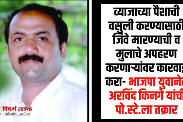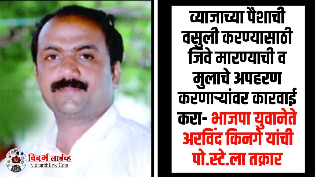 व्याजाच्या पैशाची वसुली करण्यासाठी जिवे मारण्याची व मुलाचे अपहरण करणार्यांवर कारवाई करा- भाजपा युवानेते अरविंद किनगे यांची पो.स्टे.ला तक्रार