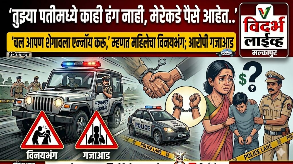 शेगाव : पतीसोबत उपचारासाठी आलेल्या महिलेचा रस्त्यात अश्लील प्रस्ताव देत विनयभंग केल्याची धक्कादायक घटना शेगाव ग्रामीण पोलीस स्टेशन हद्दीत घडली. ‘तुझ्या पतीमध्ये काही ढंग नाही, माझ्याकडे पैसे आहेत… चल आपण शेगावला एन्जॉय करू’ असे म्हणत आरोपीने महिलेचा हात पकडून गैरवर्तन केले. या प्रकरणी पोलिसांनी तात्काळ कारवाई करत आरोपीला अटक केली असून न्यायालयीन कोठडी सुनावण्यात आली…