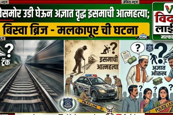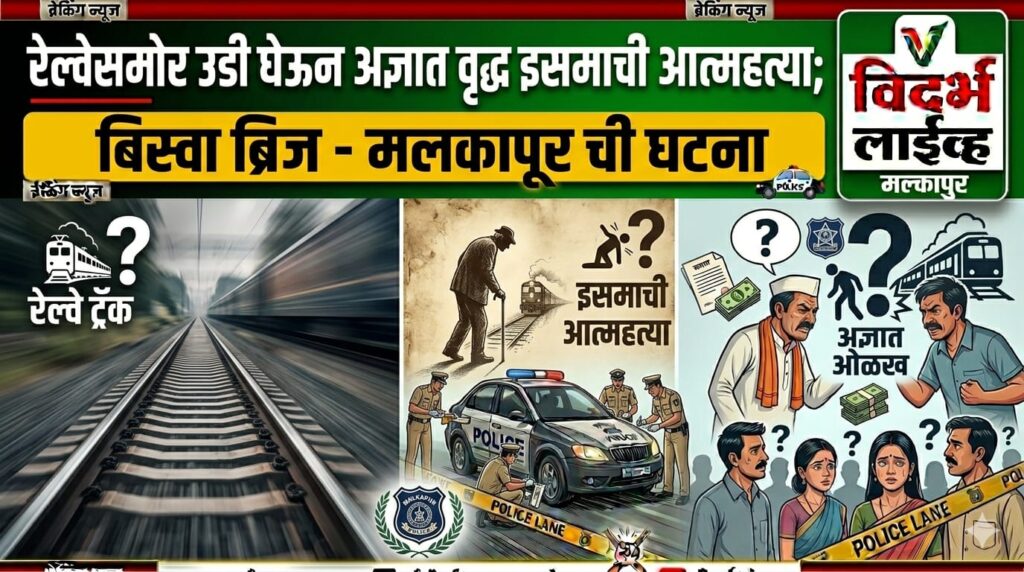 मलकापूर : बिस्वा ब्रिज ते मलकापूर रेल्वे स्टेशन दरम्यान अप लाईनवर एका अज्ञात वृद्ध इसमाने धावत्या रेल्वेसमोर उडी घेऊन आत्महत्या केल्याची धक्कादायक घटना उघडकीस आली आहे. या प्रकरणी मलकापूर शहर पोलीस ठाण्यात मर्ग दाखल करण्यात आला असून पोलिसांकडून मृताची ओळख पटविण्याचे प्रयत्न सुरू आहेत. याबाबत ट्रॅकमॅन निलेश राजाराम ढोले (युनिट क्र. १, वडोदा स्टेशन) यांनी…
