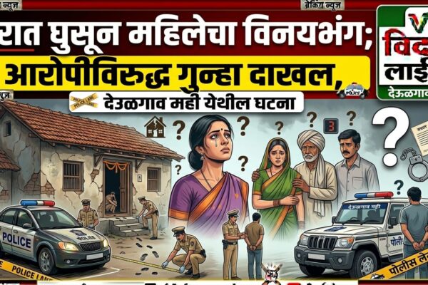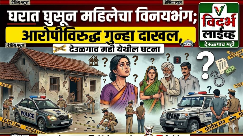 देऊळगाव राजा : देऊळगाव मही येथे एका महिलेच्या घरात जबरदस्तीने घुसून तिचा विनयभंग केल्याची धक्कादायक घटना समोर आली आहे. या प्रकरणी पीडित महिलेच्या तक्रारीवरून पोलिसांनी आरोपीविरुद्ध गुन्हा दाखल केला असून त्याचा शोध सुरू आहे. मिळालेल्या माहितीनुसार, फिर्यादी महिला आपल्या घरात असताना जुन्या वादाच्या कारणावरून आरोपीने घरात जबरदस्तीने प्रवेश केला. त्यानंतर महिलेचा हात धरून तिला घराबाहेर…