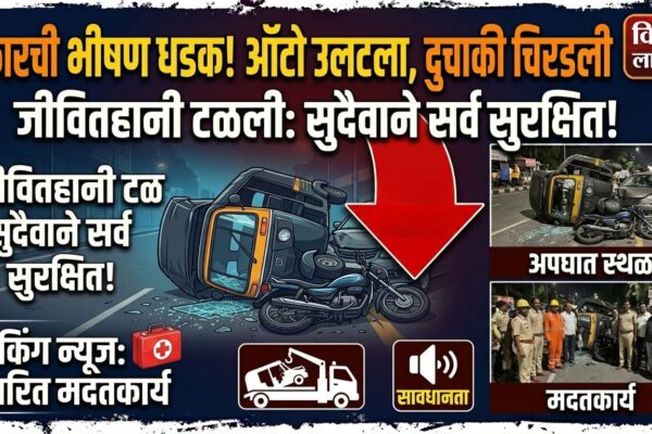 खामगाव : शहरातील टिळक पुतळा परिसरात सायंकाळच्या गर्दीच्या वेळी झालेल्या भीषण अपघातात भरधाव कारने ऑटोला जोरदार धडक दिल्याने ऑटो उलटून जवळून जाणारी दुचाकी ऑटोखाली चिरडली गेल्याची घटना घडली. या अपघातात सुदैवाने कोणतीही जीवितहानी झाली नसली तरी तिन्ही वाहनांचे मोठ्या प्रमाणात नुकसान झाले असून या घटनेने काही काळ परिसरात खळबळ उडाली. मंगळवारी सायंकाळी सुमारे ५.३० वाजण्याच्या…