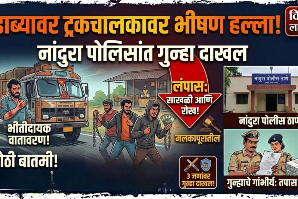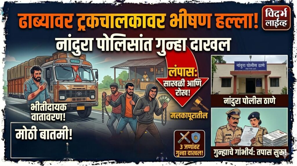 नांदुरा :- तालुक्यातील वडनेर भोलजी येथे एका ढाब्यावर जेवण करत असलेल्या ट्रकचालकावर तिघांनी हल्ला करून त्याच्याकडील सोन्याची साखळी व रोख रक्कम लंपास केल्याची घटना घडली आहे. या प्रकरणी नांदुरा पोलिसांनी तिघांविरुद्ध गुन्हा नोंदविला आहे. मिळालेल्या माहितीनुसार, सलमान खान फिरोज खान (वय ३४, रा. सुरत, गुजरात) हे ट्रकचालक ६ एप्रिल रोजी रात्री उशिरा आपल्या मित्रासह ढाब्यावर…
