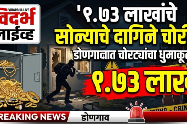 डोणगाव :- येथील खंडोबा परिसरात अज्ञात चोरट्यांनी घरफोडी करून सुमारे १ लाख ७३ हजार रुपयांचे सोन्याचे दागिने लंपास केल्याची घटना समोर आली आहे. ही चोरी ९ ते १३ एप्रिलदरम्यान घडल्याचे सांगण्यात येत असून, परिसरात भीतीचे वातावरण निर्माण झाले आहे. मिळालेल्या माहितीनुसार, वार्ड क्रमांक २ मधील रहिवासी डॉ. गजानन प्रल्हादराव पातुरकर हे घराला कुलूप लावून बाहेरगावी…