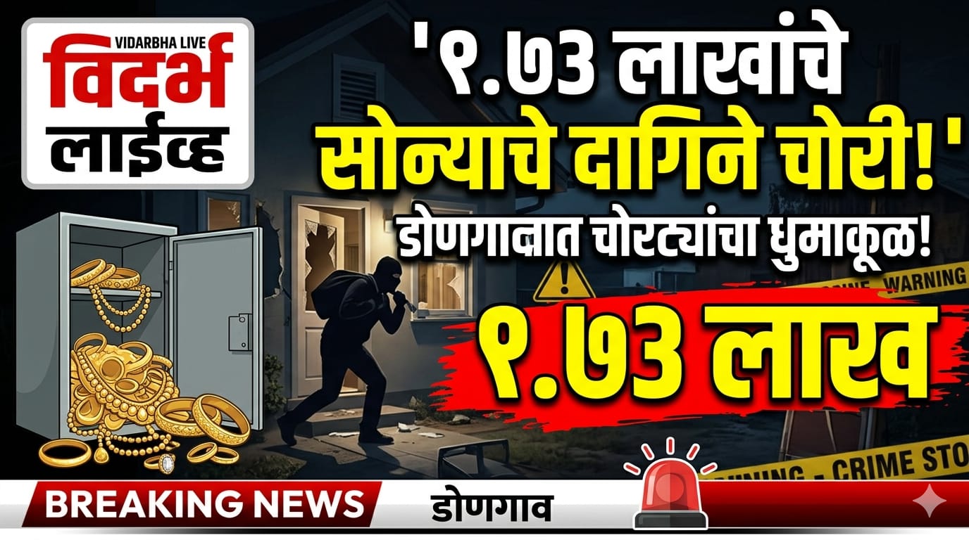 डोणगाव :- येथील खंडोबा परिसरात अज्ञात चोरट्यांनी घरफोडी करून सुमारे १ लाख ७३ हजार रुपयांचे सोन्याचे दागिने लंपास केल्याची घटना समोर आली आहे. ही चोरी ९ ते १३ एप्रिलदरम्यान घडल्याचे सांगण्यात येत असून, परिसरात भीतीचे वातावरण निर्माण झाले आहे. मिळालेल्या माहितीनुसार, वार्ड क्रमांक २ मधील रहिवासी डॉ. गजानन प्रल्हादराव पातुरकर हे घराला कुलूप लावून बाहेरगावी गेले होते. याच संधीचा फायदा घेत चोरट्यांनी घराचे कुलूप तोडून आत प्रवेश केला. घरातील बेडरूममधील कपाट उघडून सोन्याचे दागिने चोरी करण्यात आले. यामध्ये अंगठ्या, झुमके, रिंग, नथ तसेच सुमारे २० ग्रॅम वजनाचे गंठण यांचा समावेश आहे. घरातील साहित्यही अस्ताव्यस्त अवस्थेत आढळून आले. या प्रकरणी डॉ. पातुरकर यांच्या तक्रारीवरून पोलिसांनी अज्ञात आरोपीविरुद्ध घरफोडीचा गुन्हा दाखल केला आहे. पुढील तपास पोलीस कर्मचारी संजय धिके करीत आहेत. दरम्यान, चोरीस गेलेल्या दागिन्यांची प्रत्यक्ष बाजारभावानुसार किंमत अधिक असू शकते, असा अंदाज व्यक्त करण्यात येत आहे.