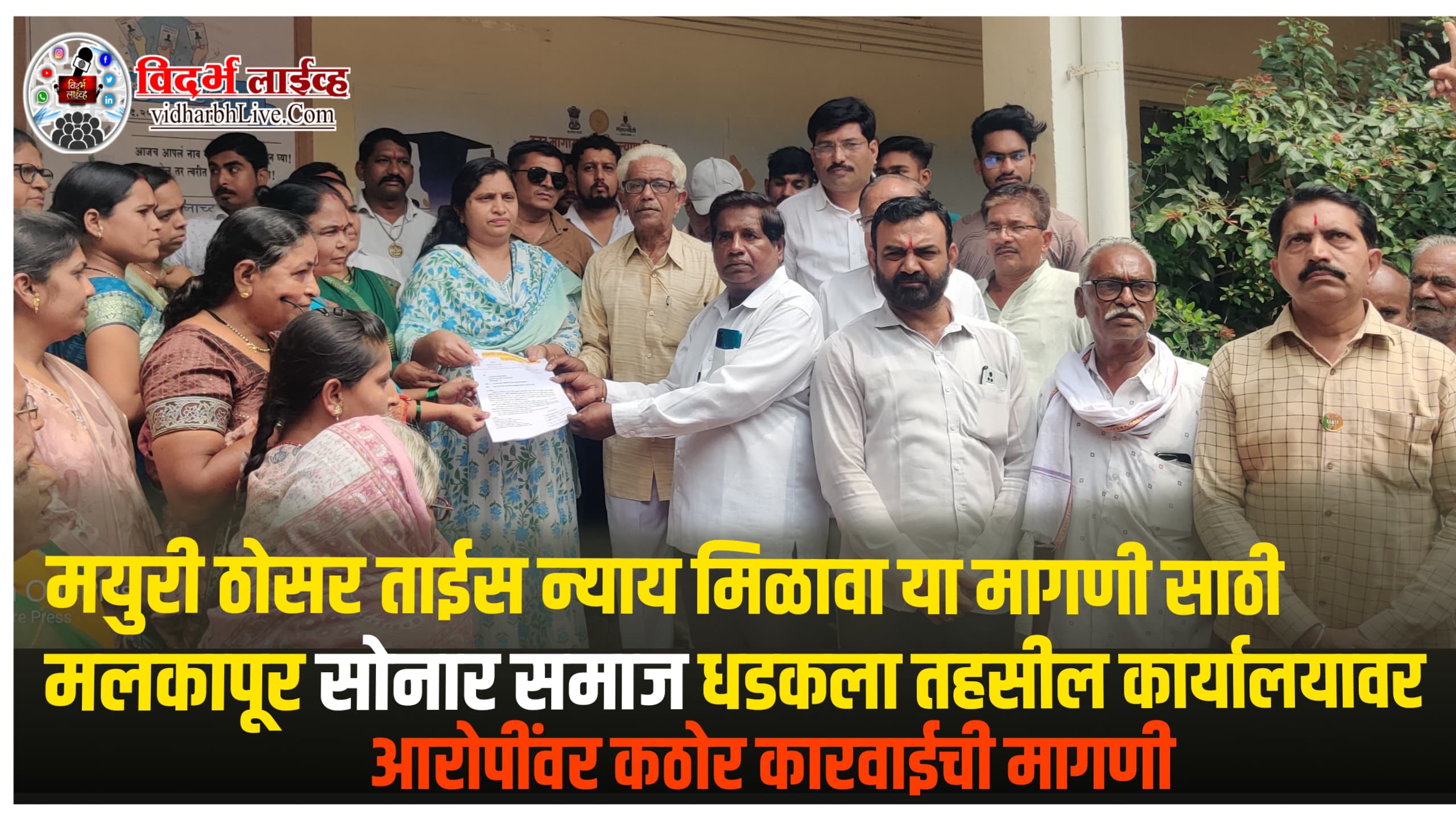 माळवी सोनार समाज, मलकापूर यांच्यावतीने मुख्यमंत्री तथा गृहमंत्री मा. देवेंद्र फडणवीस यांना निवेदन देऊन या प्रकरणातील सर्व आरोपींवर कठोर कारवाईची मागणी करण्यात आली आहे. निवेदनात म्हटले आहे की, आरोपी पती गौरव ठोसर, गणेश किशोर ठोसर, किशोर ठोसर, लता किशोर ठोसर यांच्यावर जलदगती न्यायालयात खटला चालवून कठोर शिक्षा करावी व एकाही आरोपीस जामीन मंजूर करू नये. तसेच अशा अमानुष घटनांना आळा घालण्यासाठी राज्य शासनाने विशेष जनजागृती मोहिम राबवावी, अशीही मागणी करण्यात आली आहे. या निवेदनावर माळवी सोनार समाज मलकापूरचे अध्यक्ष सुभाष शंकर ठोसर व सचिव मनोहर मुरलीधर रत्नपारखी यांच्यासह शेकडो सोनार समाजातील महिला व पुरुषांच्या स्वाक्षरी आहे.