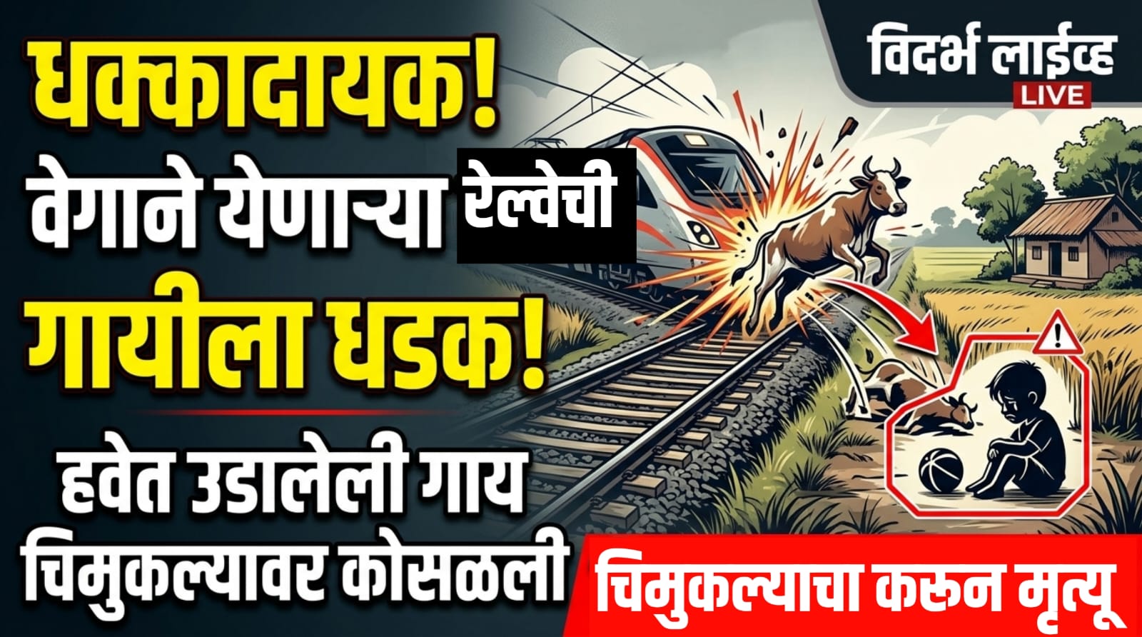 रेल्वे रुळावर आलेल्या गायीला वेगाने येणाऱ्या रेल्वेगाडीने जोरदार दिली धडक; धडकेत गाय हवेत उडून बाजूलाच खेळत असलेल्या चिमुकल्याच्या अंगावर कोसळली; चुमुकल्याचा मृत्यू