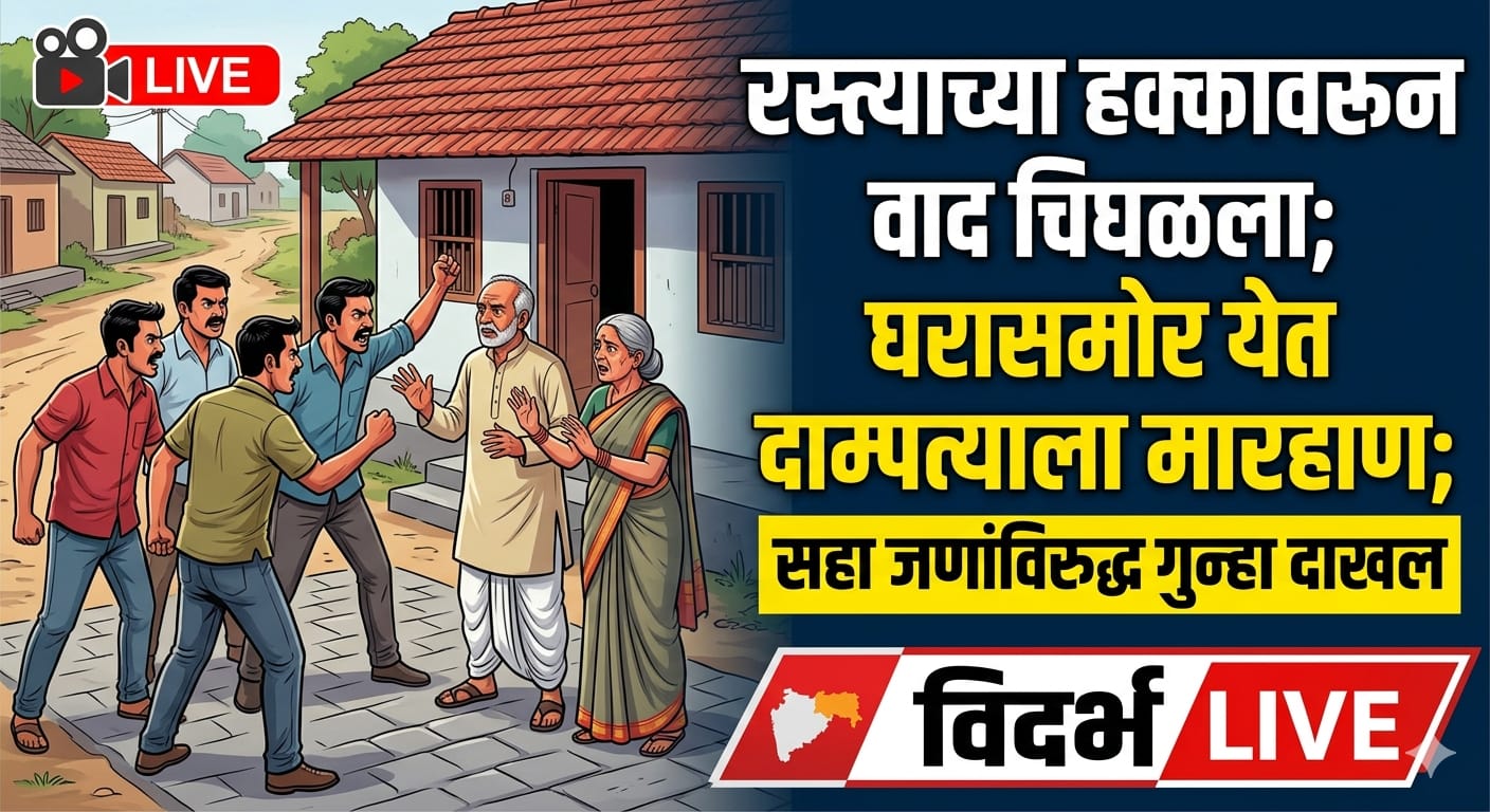 मेरा बु.:- अंढेरा गावात शेतातील जाण्या-येण्याच्या रस्त्याच्या हक्कावरून सुरू झालेला वाद चिघळत थेट घरासमोर येऊन मारहाणीपर्यंत पोहोचल्याची घटना उघडकीस आली आहे. या प्रकरणी पोलिसांनी सहा जणांविरुद्ध गुन्हा नोंदवला आहे. याबाबत मिळालेल्या माहितीनुसार, संगीता प्रल्हाद नागरे (वय ४५) या १२ एप्रिल रोजी घरी परतत असताना रामा प्रल्हाद केदार यांच्या शेतातून जात होत्या. यावेळी “या रस्त्याने येऊ नका” असे सांगत आरोपींकडून त्यांना अडवण्यात आले. त्यावरून दोघांत वाद निर्माण झाला व शिवीगाळ करण्यात आली. यानंतर आरोपींनी फिर्यादीच्या घरासमोर जाऊन संगीता नागरे व त्यांच्या पतीवर चापट-बुक्क्यांनी हल्ला केला. तसेच भाग्यश्री रामा केदार व चंद्रभागा प्रल्हाद केदार यांनीही मारहाण करून जीवे मारण्याची धमकी दिल्याचे तक्रारीत नमूद आहे. या घटनेप्रकरणी अंढेरा पोलीस ठाण्यात संजू राघू केदार, वंदना रमेश केदार, भाग्यश्री रामा केदार, चंद्रभागा प्रल्हाद केदार, रमेश सखाराम नागरे व रामा प्रल्हाद केदार (सर्व रा. अंढेरा) यांच्याविरुद्ध भारतीय न्याय संहिता अंतर्गत विविध कलमान्वये गुन्हा दाखल करण्यात आला आहे. ठाणेदार रुपेश शक्करगे यांच्या मार्गदर्शनाखाली पुढील तपास सुरू आहे.