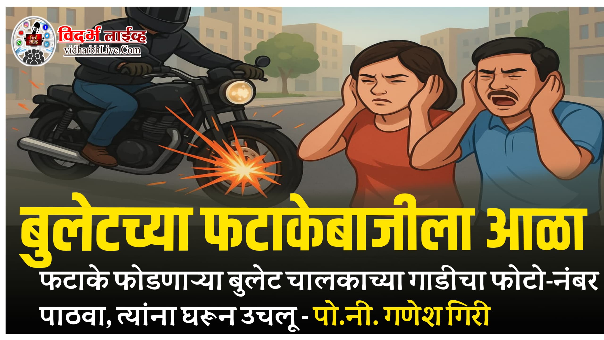 या पार्श्वभूमीवर मलकापूर शहराचे कर्तव्यदक्ष पोलीस निरीक्षक गणेश गिरी यांनी कडक भूमिका घेतली आहे. नागरिकांना दिलेल्या इशाऱ्यामध्ये त्यांनी स्पष्ट शब्दांत सांगितले आहे की “कोणत्याही नागरिकाला बुलेट चालकांमुळे त्रास होत असेल तर त्या गाडीचा नंबर किंवा फोटो माझ्या व्हॉट्सअॅपवर पाठवा. पाठवणाऱ्याचे नाव पूर्णपणे गुप्त ठेवले जाईल. आम्ही अशा बुलेटचालकांना घरून उचलून त्यांच्यावर कठोर कारवाई करू. त्यांच्या बुलेटचे सायलेन्सर जप्त करून कायमस्वरूपी बंदोबस्त केला जाईल.”