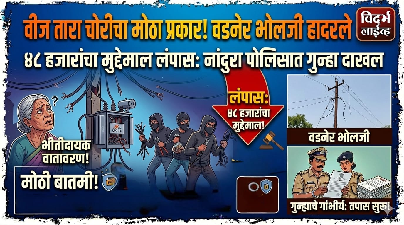 या प्रकरणी वडनेर भोलजी येथील महावितरण केंद्राचे कनिष्ठ अभियंता मंगेश प्रभाकर राणे (वय ३८) यांनी नांदुरा पोलिस ठाण्यात तक्रार दाखल केली आहे. त्यांच्या तक्रारीवरून पोलिसांनी अज्ञात चोरट्यांविरुद्ध गुन्हा नोंदविला आहे.