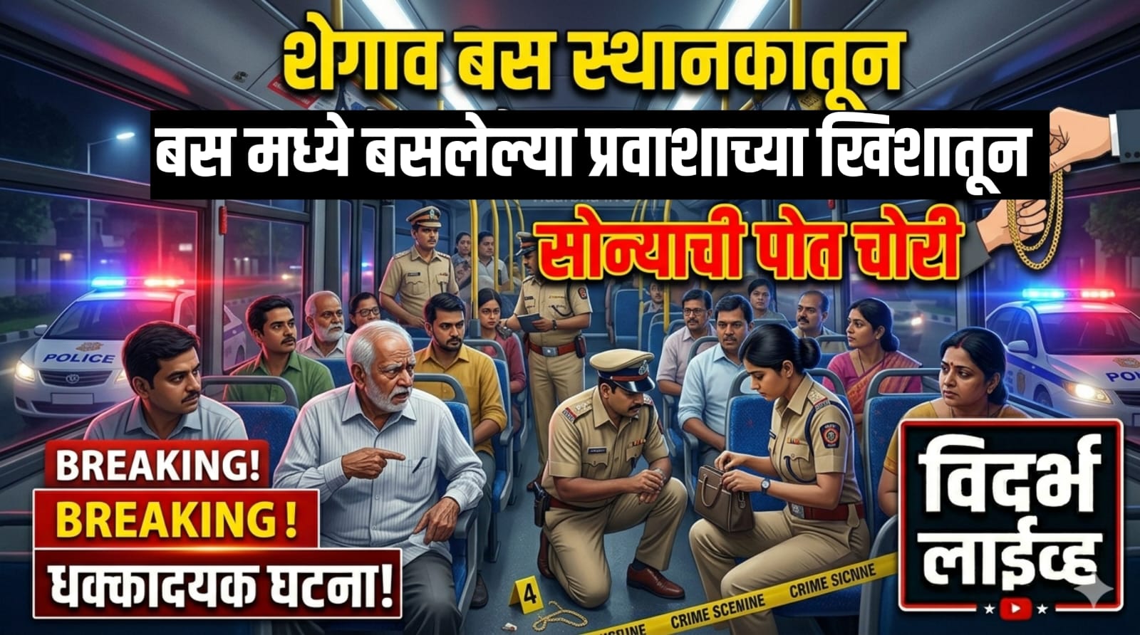 शेगाव :- बसस्थानकातून सुटलेल्या बसमध्ये प्रवास करत असलेल्या एका वृद्ध प्रवाशाच्या खिशातून अज्ञात चोरट्याने सोन्याची पोत लंपास केल्याची घटना घडली आहे. मिळालेल्या माहितीनुसार, महादेव प्रल्हाद हिवरे (वय ६६, रा. सांगवी, ता. तेल्हारा, जि. अकोला) हे १६ एप्रिल रोजी शेगाव येथून सांगवीकडे जाणाऱ्या बसमध्ये प्रवास करत होते. प्रवासादरम्यान गर्दीचा फायदा घेत अज्ञात व्यक्तीने त्यांच्या खिशातील सोन्याची पोत चोरून नेली. चोरीस गेलेली पोत सुमारे ५ ग्रॅम वजनाची असून त्यात ४६ मणी असल्याची माहिती मिळाली आहे. या प्रकारामुळे प्रवाशांमध्ये असुरक्षिततेची भावना निर्माण झाली आहे.